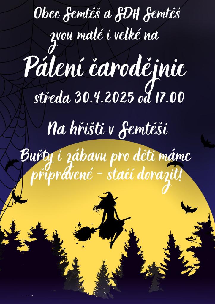 Obec Semtěš a SDH Semtěš srdečně zvou malé i velké na oblíbenou akci Pálení čarodějnic. Tato událost se uskuteční ve středu 30. dubna 2025 od 17:00 na hřišti v Semtěši. Pro děti budou připraveny buřty, takže neváhejte a přijďte se bavit!