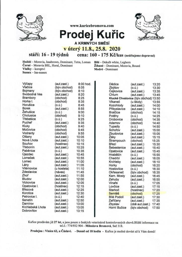 Prodej se uskuteční v dny 11.8. a 25.8. u obchodu 17:25 hod..