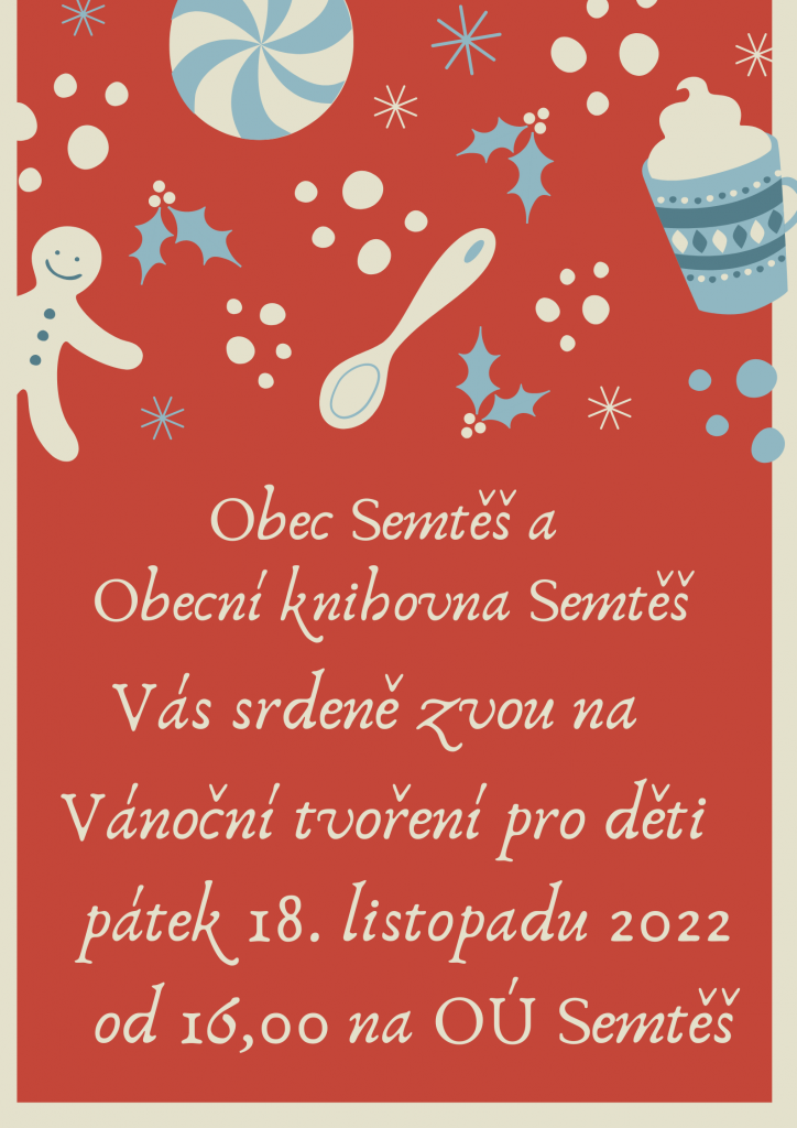 Obec Semtěš a Obecní knihovna Semtěš Vás zvou na Vánoční tvoření pro děti
