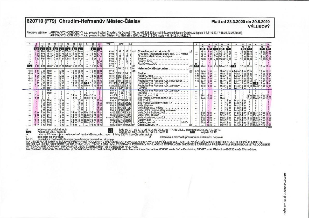 Pardubický kraj mění od soboty 28. 3. jízdní řád linky 620710